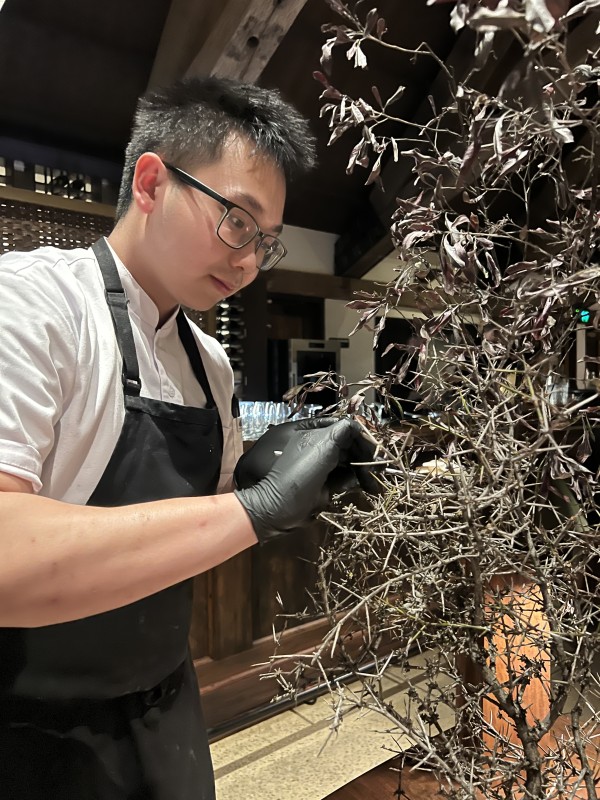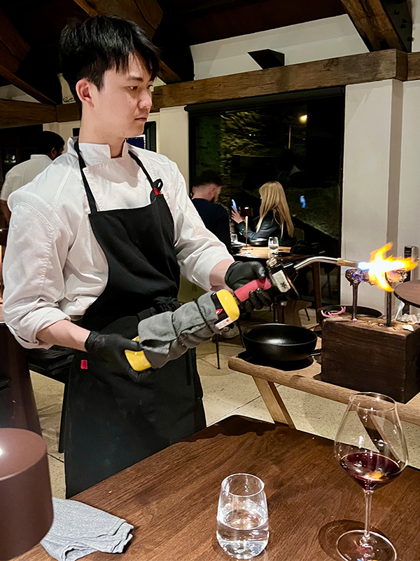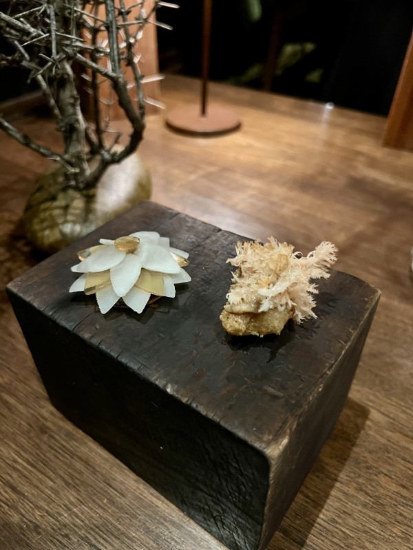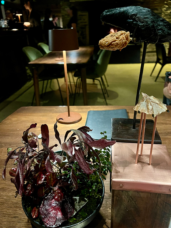 There is a unique sense of anticipation when you look across the room to see four waiting staff headed for your table holding vases of matagouri with mushroom amuse bouche hidden on their branches or butterfish heads, steaming in a bed of dry ice.