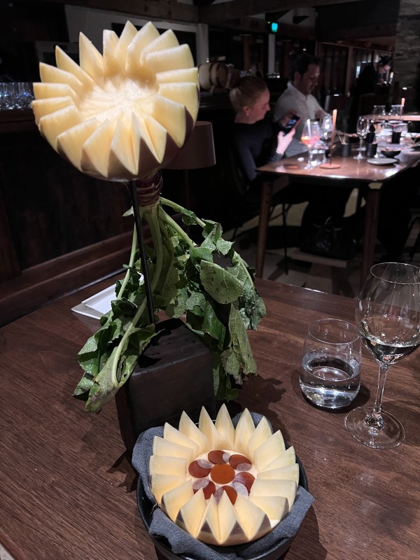 A highlight of visiting the Central Otago region has to be dinner at Amisfield. Settling in for the Chef's Tasting Menu of over 25 courses is an epic gastronomic adventure. On this evening, Chef Vaughan Mabee was in full control and invited us to share the new charcuterie experience in the upstairs dining room with legs of wild boar hanging in the background, house-made cured meats and salamis, liver parfait, & pig snout.