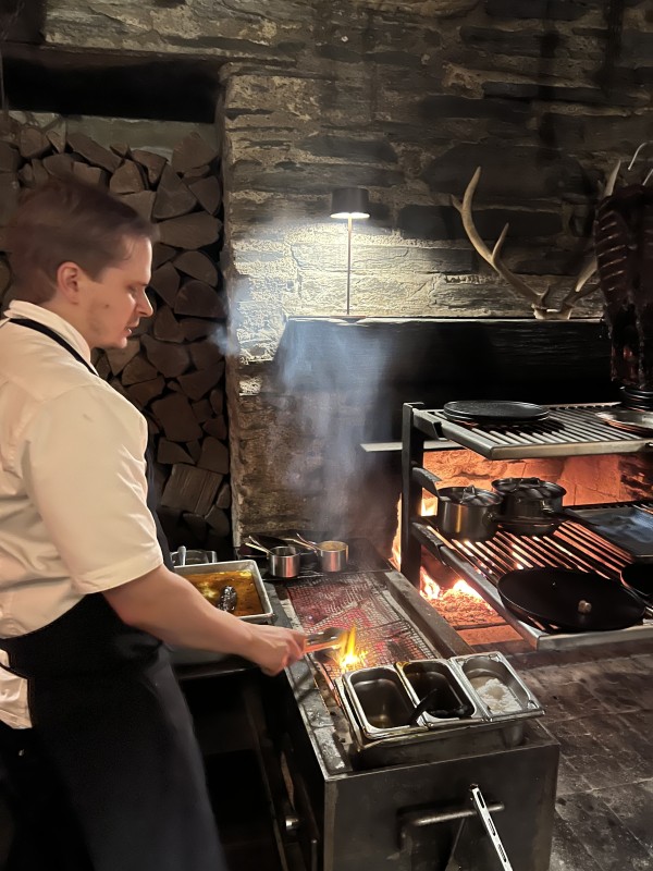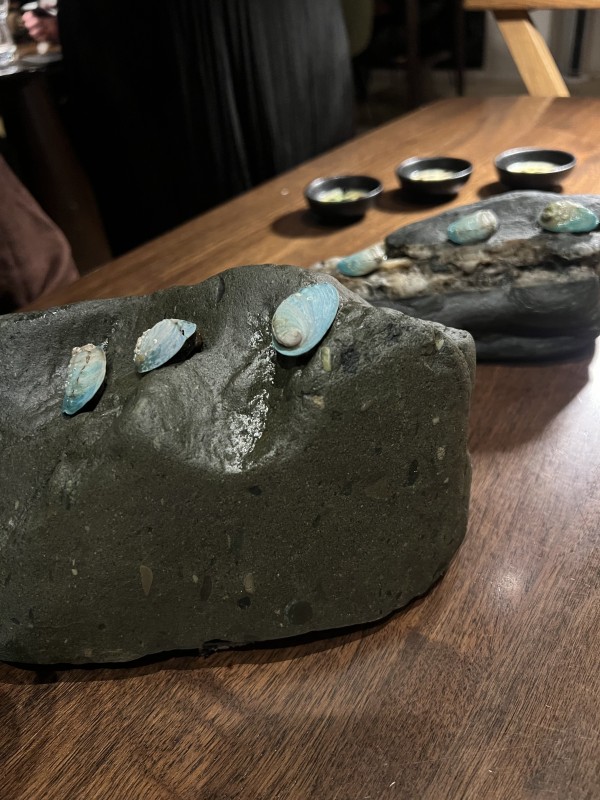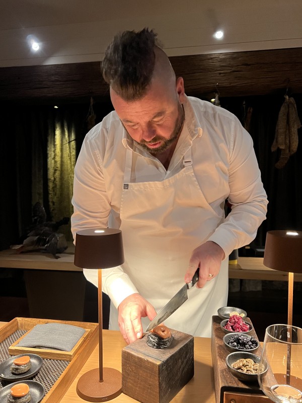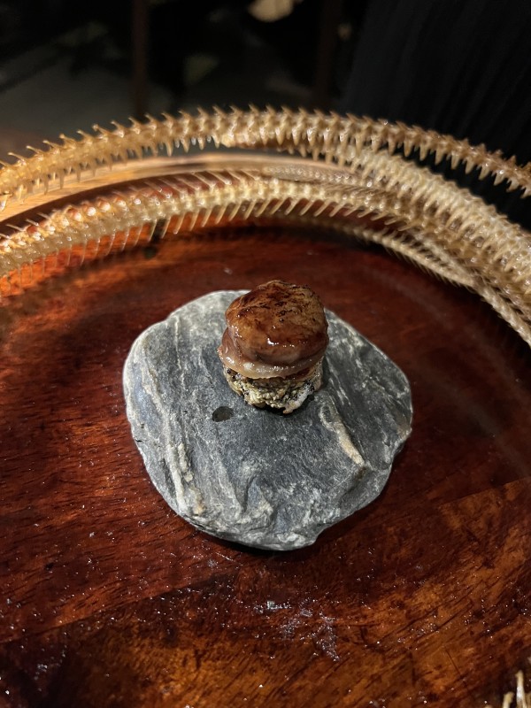 Titi (muttonbird) wicked wing, hare, mallard palmate. Goat under torch at the tableside.