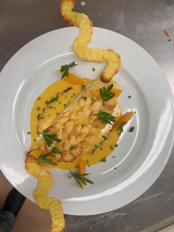 Chef Paul Bocuse Fish with potato scales and white wine & orange sauce