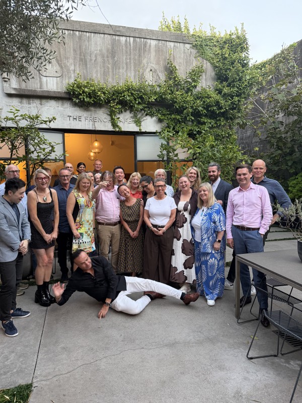 Dr Loosen with a happy group of diners at The French Cafe