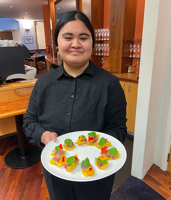 Level 4 Cookery students, as part of their module on canapés and business entertaining, prepare the canapés for the Court of Master Sommelier’s Awards Reception at the New Zealand School of Food and Wine.