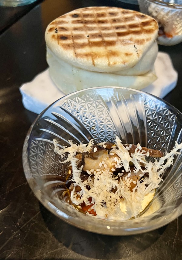 Roadside BBQ harks back to a Samoan favorite prepared 2 ways: braised Pork belly and Hot honey-coated Pork rib. With this dish there was a cup of Umu Chicken broth