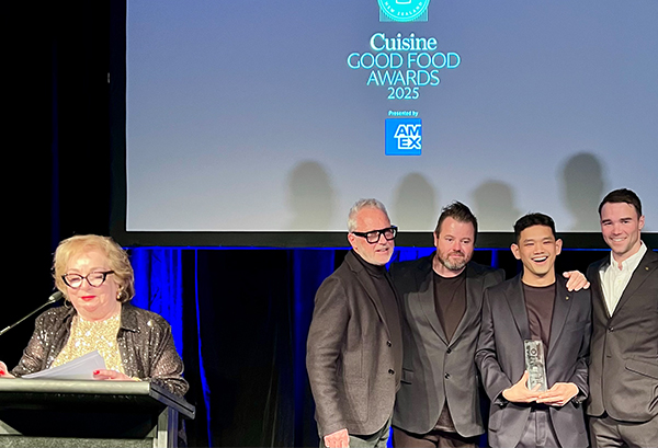 At the Cuisine Good Food Awards, Kelli Brett, John Darby (owner of Amisfield) Chef Vaughan Mabee, Head Chef Peng, American Express.