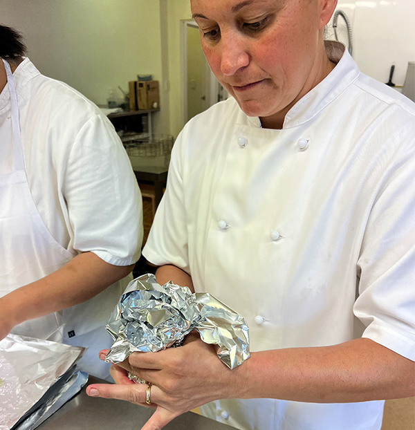- Equipment: Aluminium foil squares (approx. 30x30cm for each parcel)