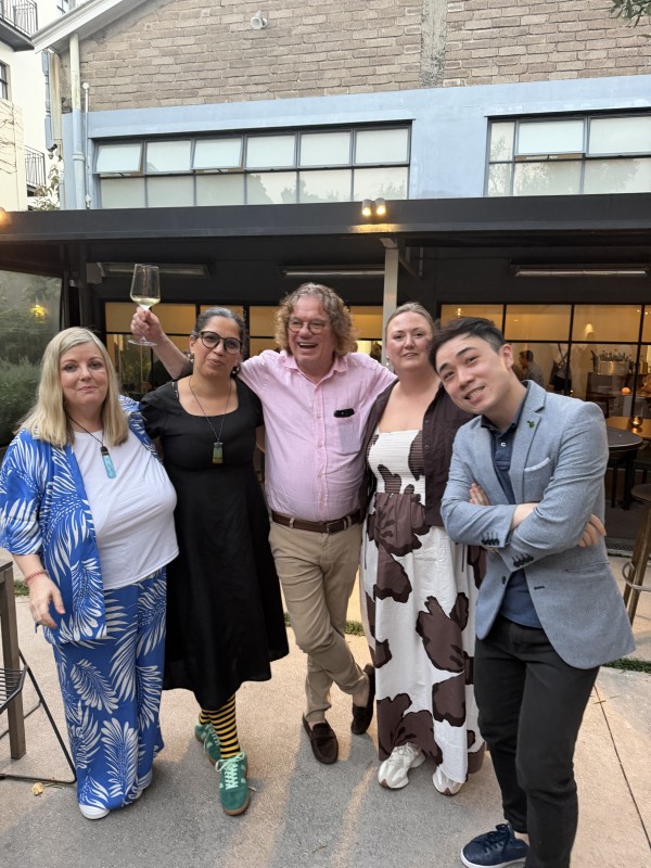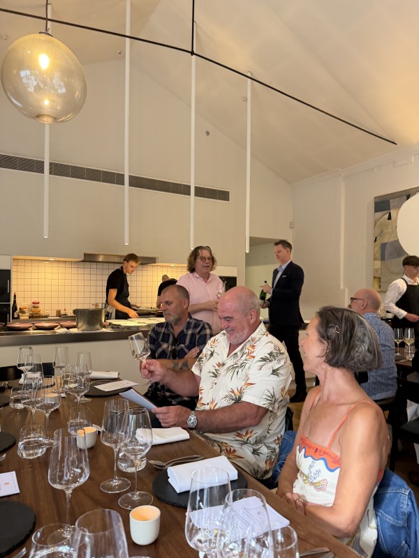 Dr Loosen with a happy group of diners at The French Cafe