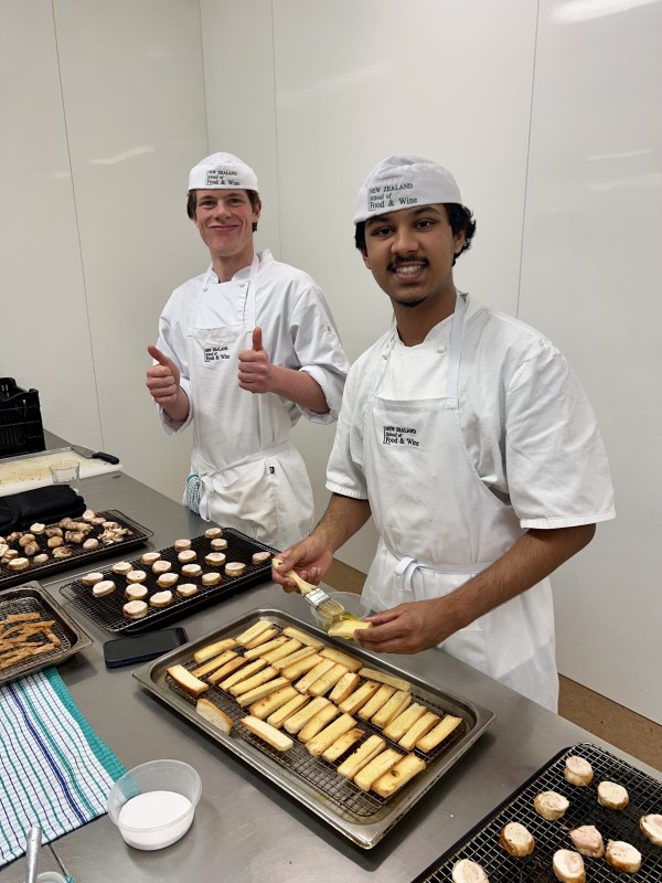 Level 4 Cookery students, as part of their module on canapés and business entertaining, prepare the canapés for the Court of Master Sommelier’s Awards Reception at the New Zealand School of Food and Wine.