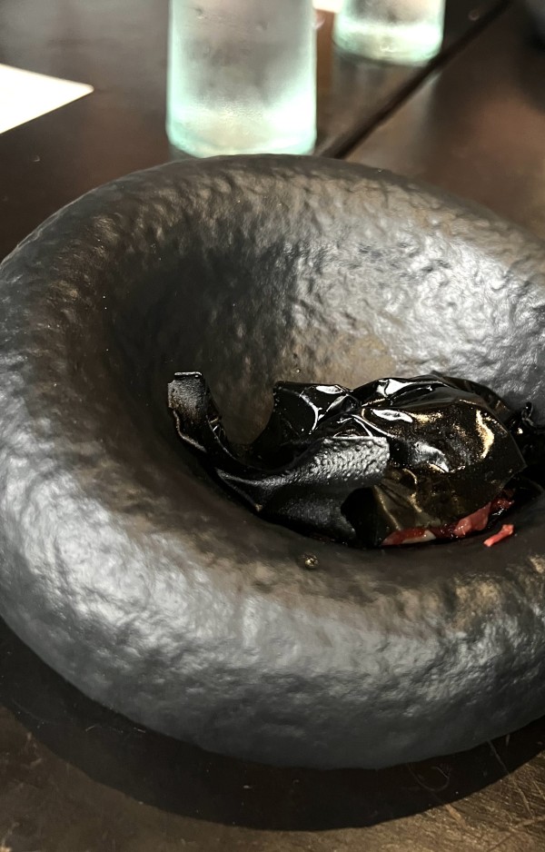 Pisupo explores the Samoan heritage dish of tinned corned beef. Here Chef Henry has transformed this into Beef tartare from 55 aged sirloin, with a cashing of charcoal glass.