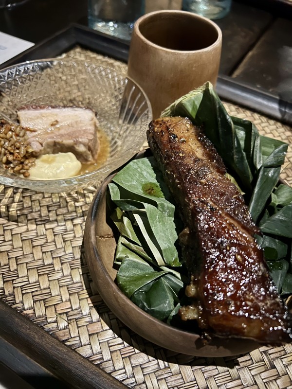 Roadside BBQ harks back to a Samoan favorite prepared 2 ways: braised Pork belly and Hot honey-coated Pork rib. With this dish there was a cup of Umu Chicken broth